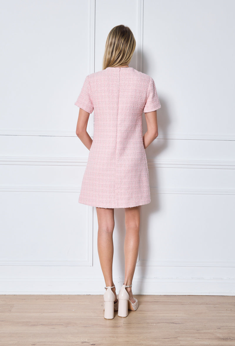 A-LINE SHORT SLEEVE BABY PINK TWEED DRESS