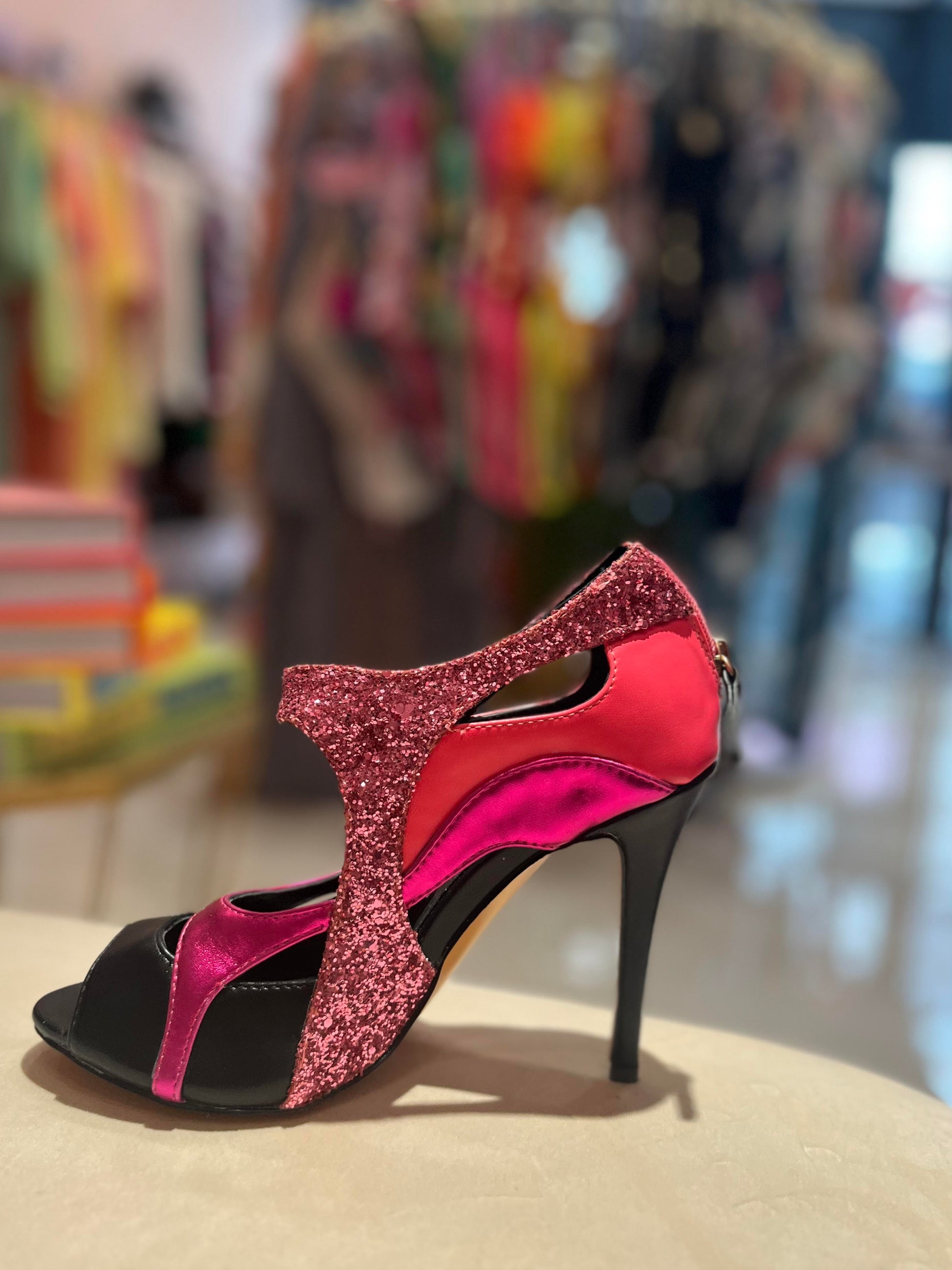 Color: Metallic fuschia and black