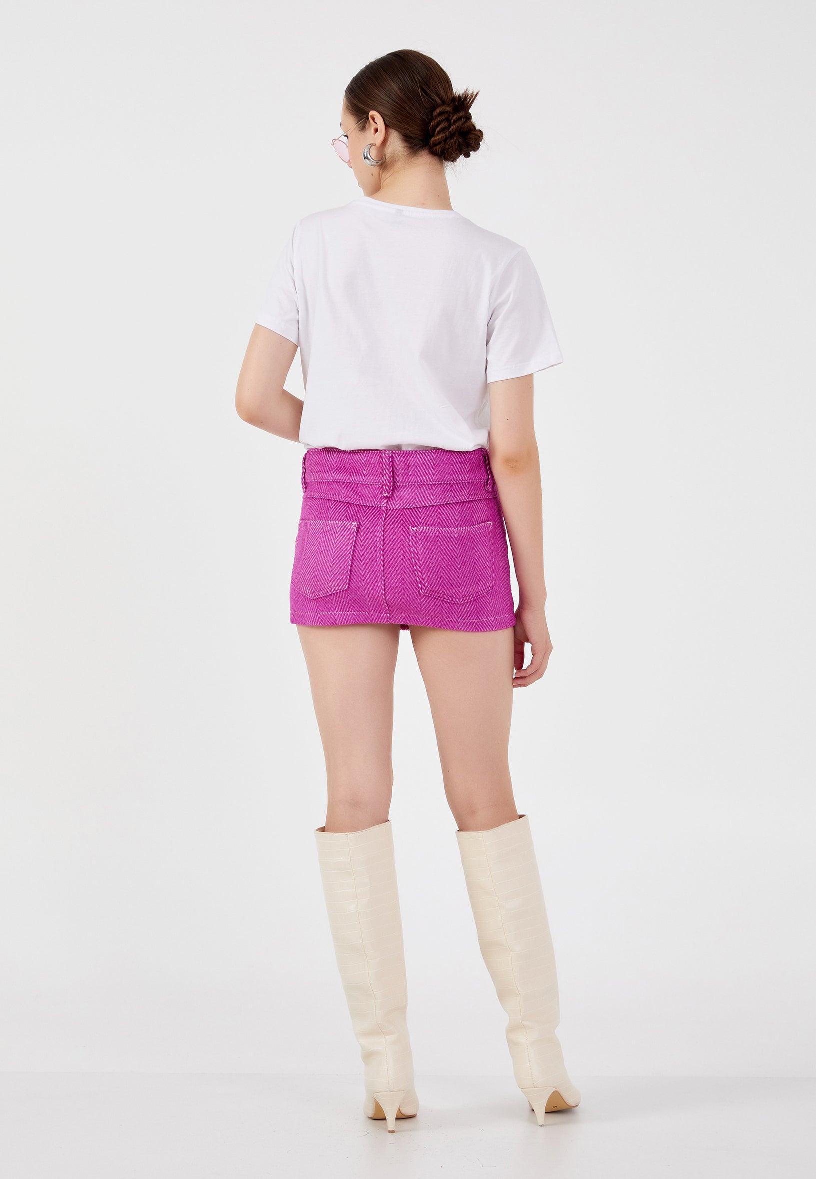 *Fuchsia mini skirt made of blended wool and flap closure center zip with back pockets