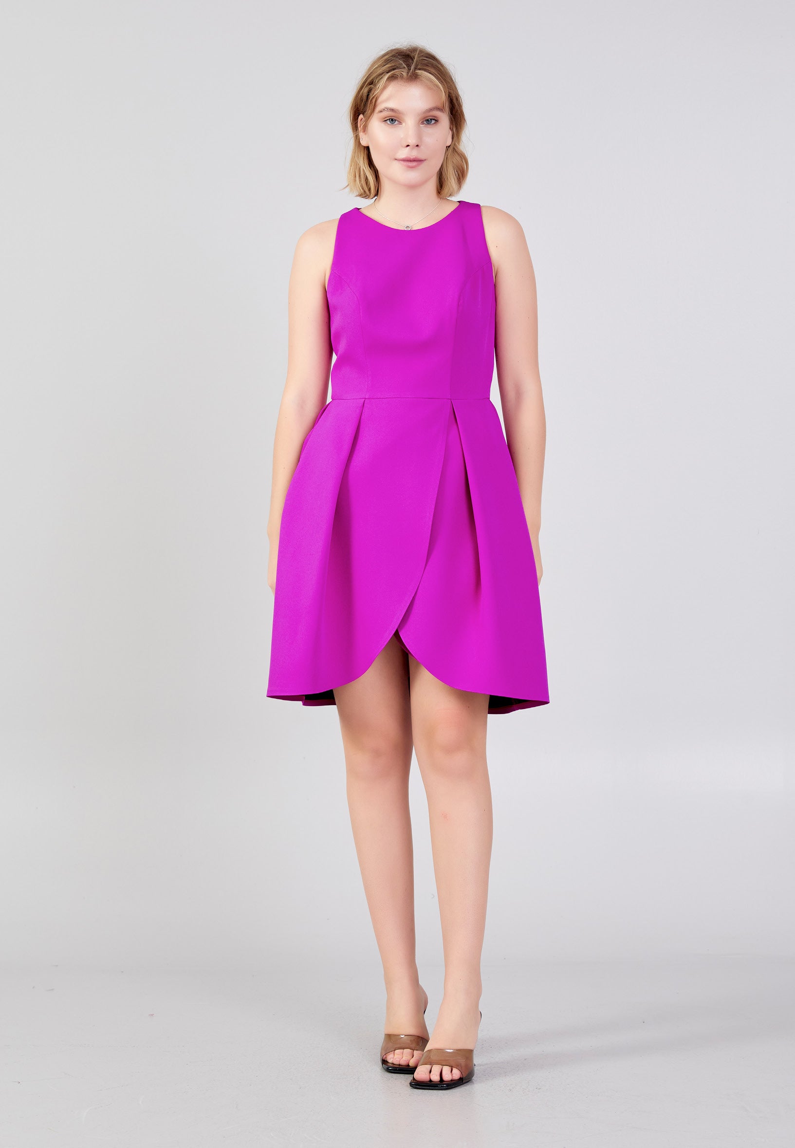 Pink vibrant fuschia petal sleeveless dress