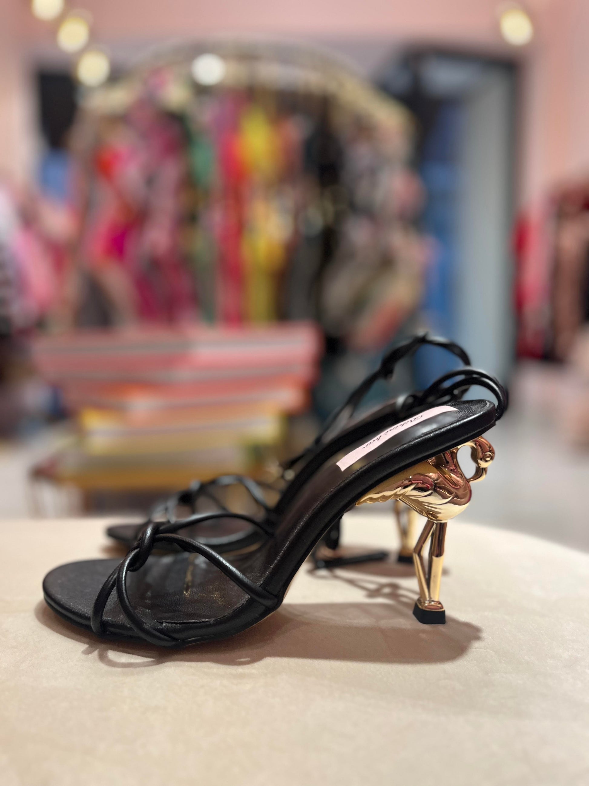 GOLD AND BLACK FLAMMINGO HEELS