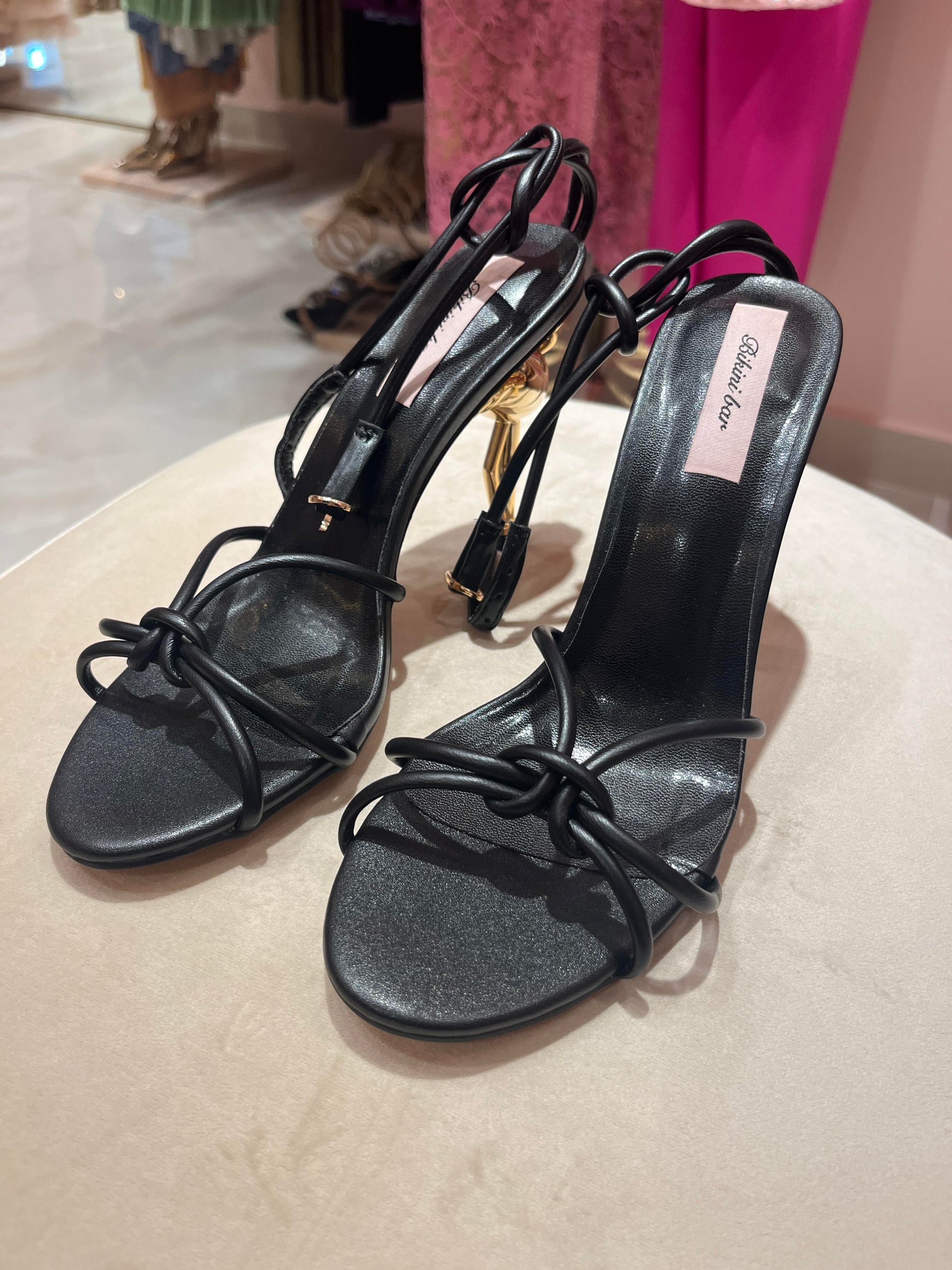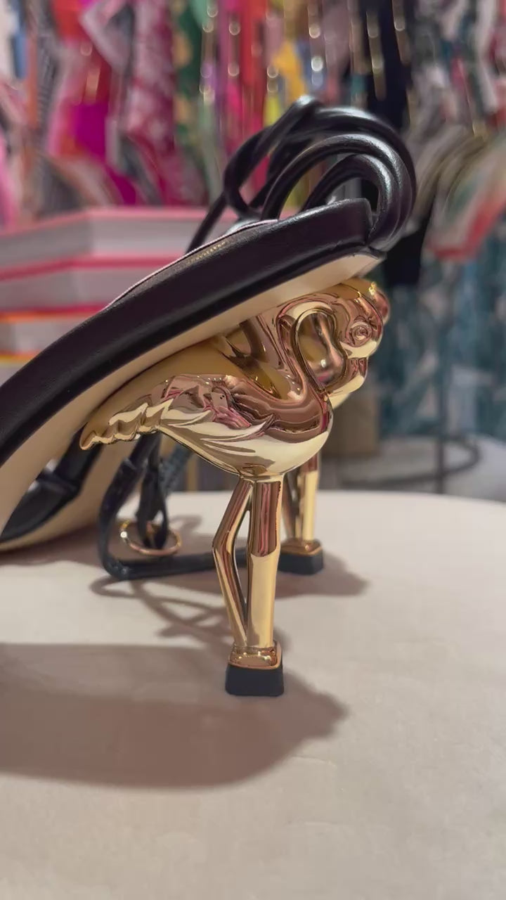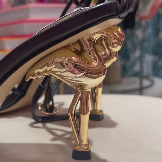 Gold and black flamingo strappy scandal heel
