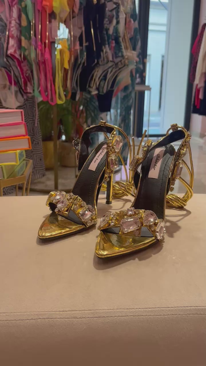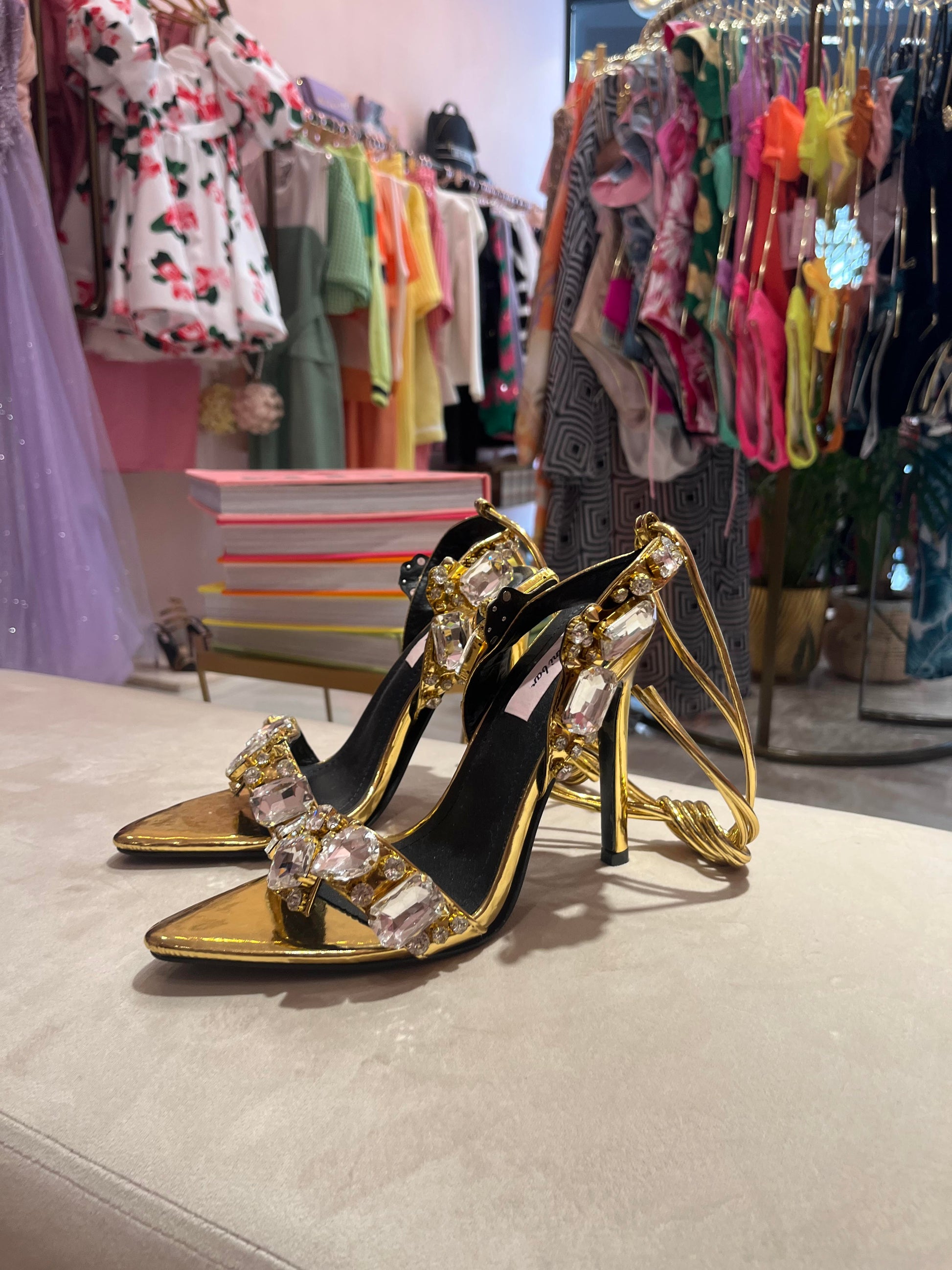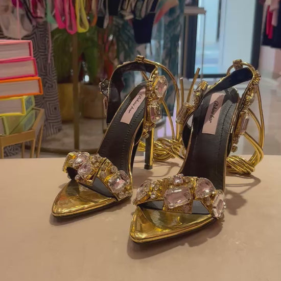 GOLD CRYSTAL STONES STRAPPY HIGH HEELS