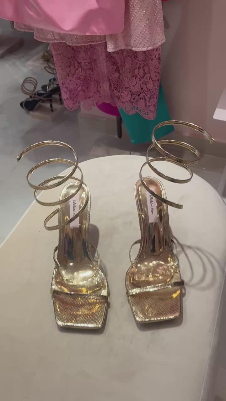GOLD PYTHON STRAPPY ANKLE HEELS