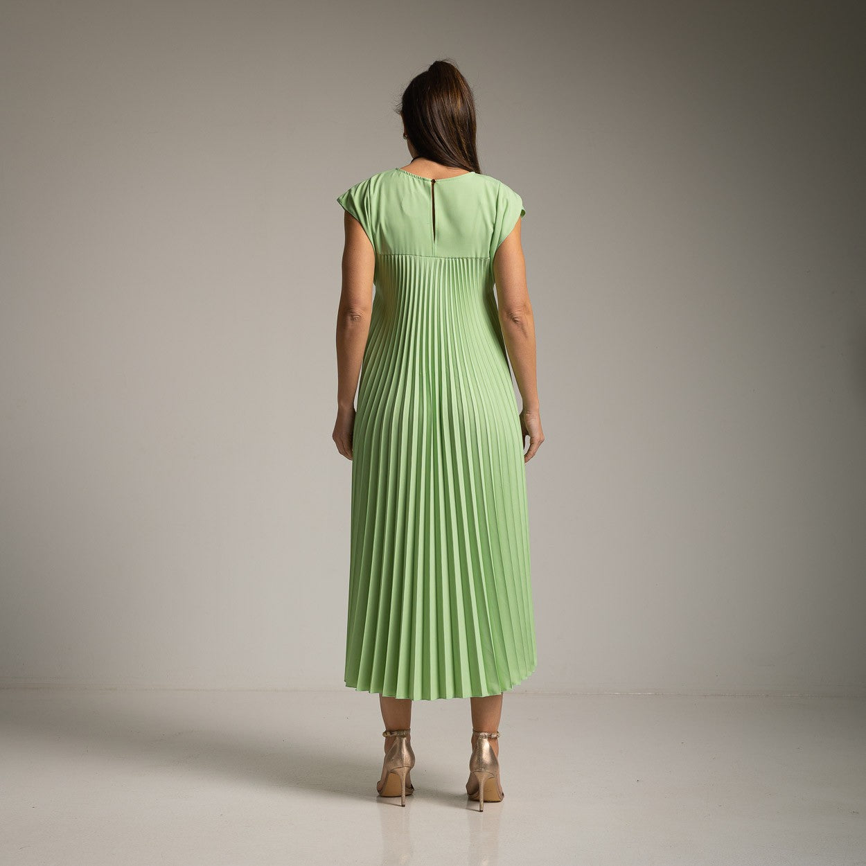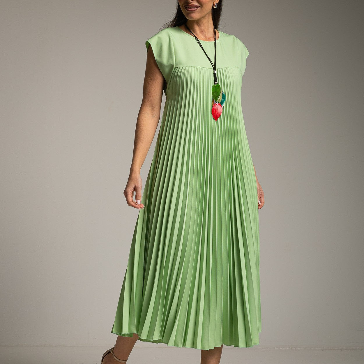 GREEN PISTACHIO PLEATED LONG SUMMER DRESS