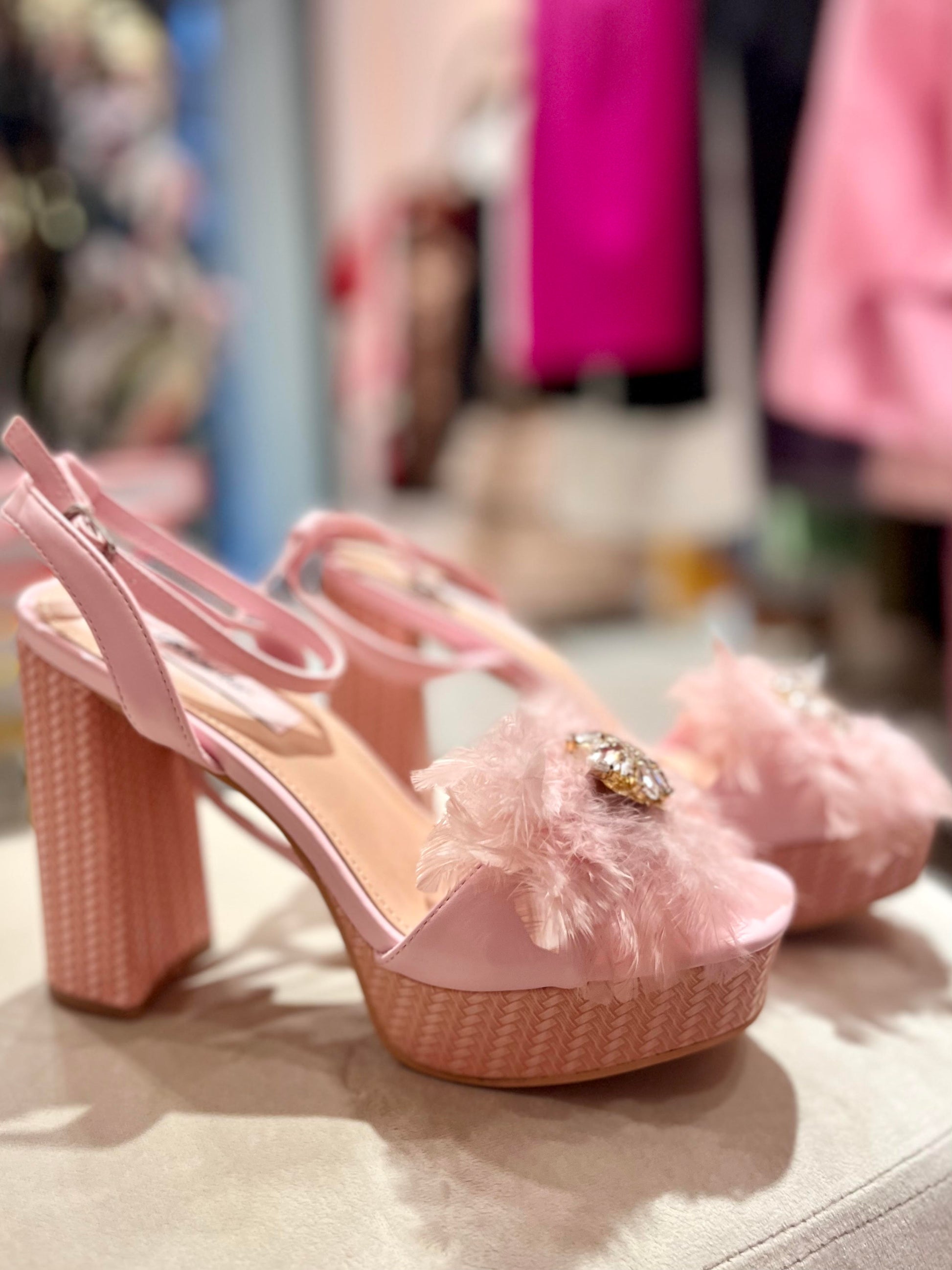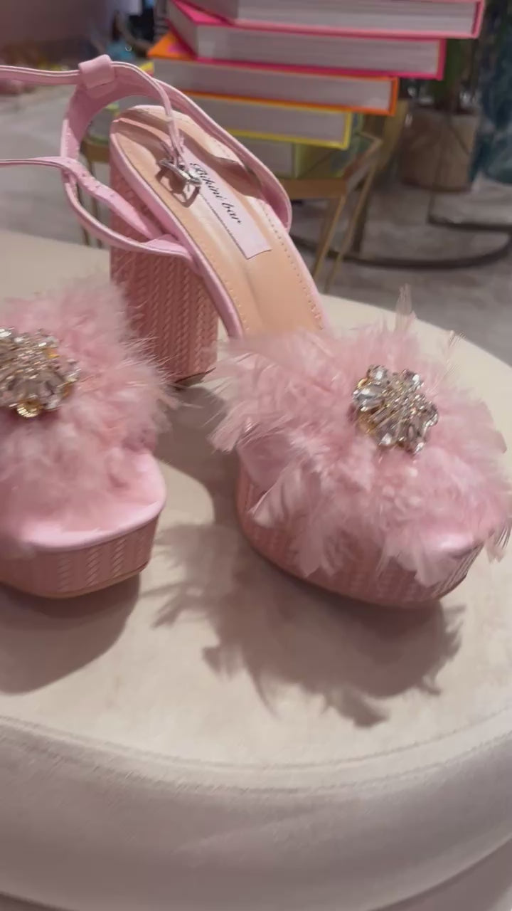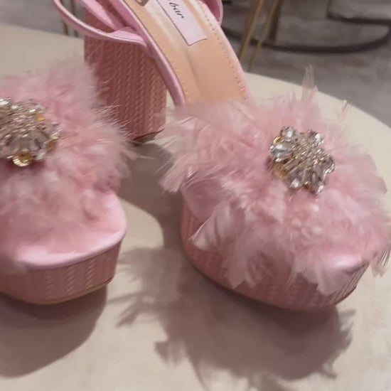 *Light pink plateform heel with crystal jewel and light pink feathers detail