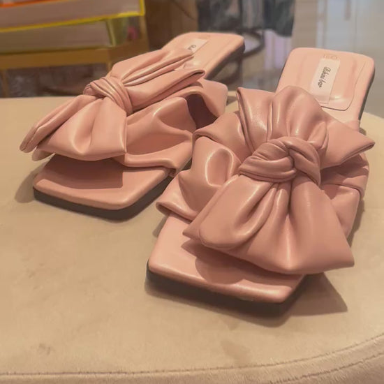 *Tacón mule pequeño con lazo grande de cuero vegano