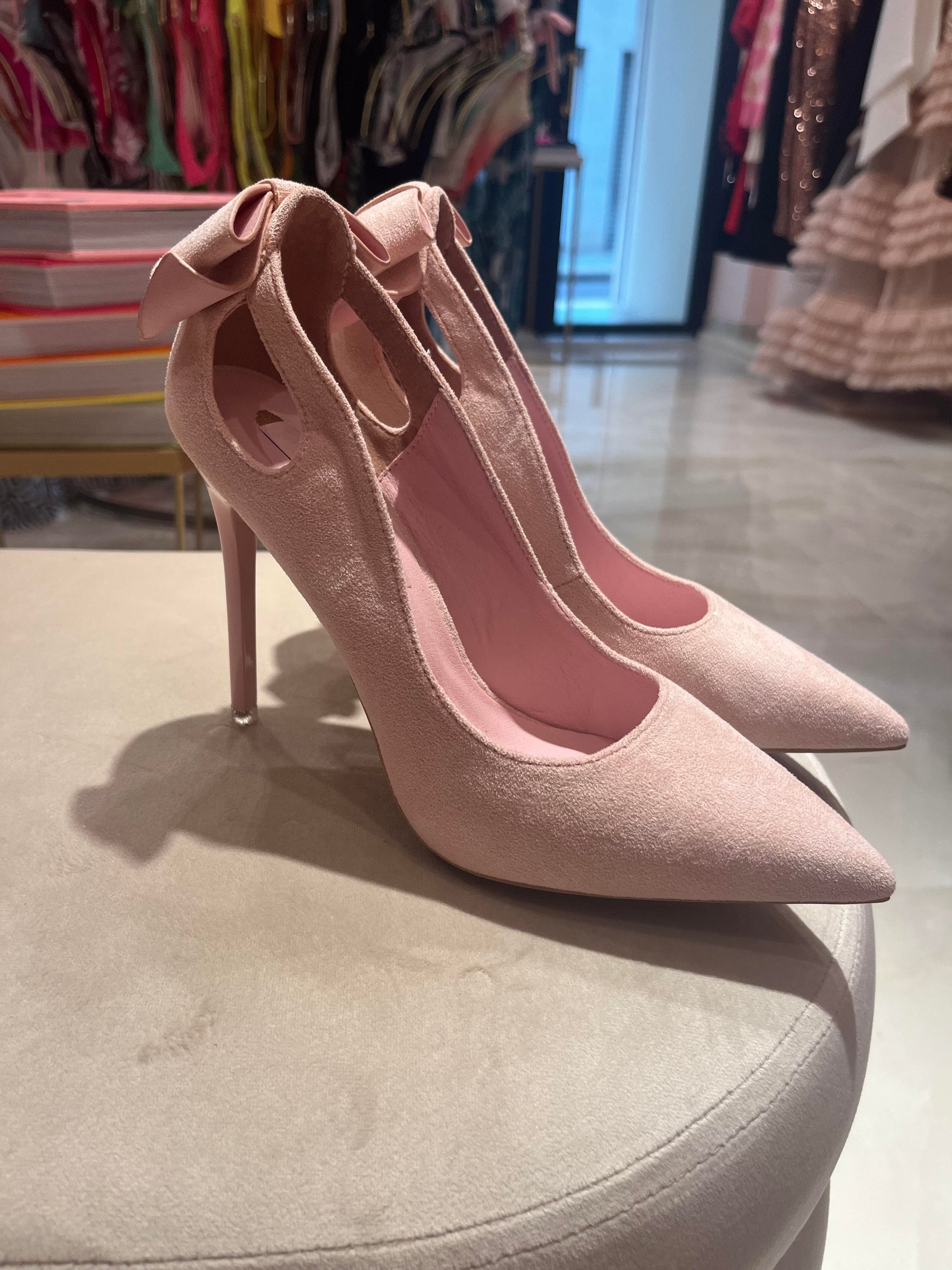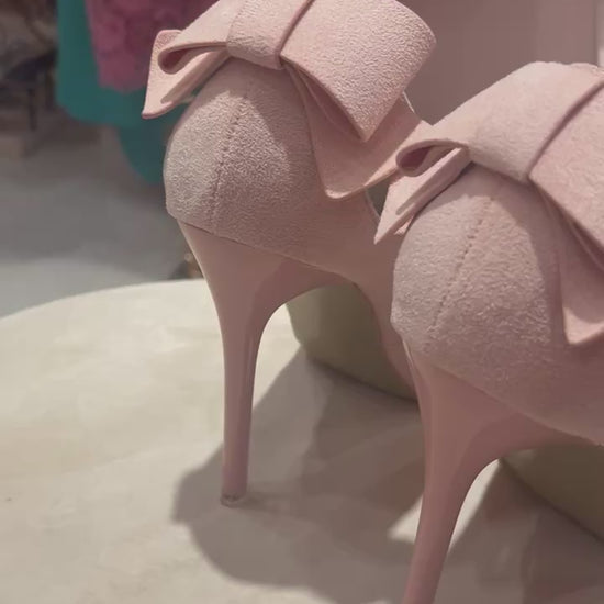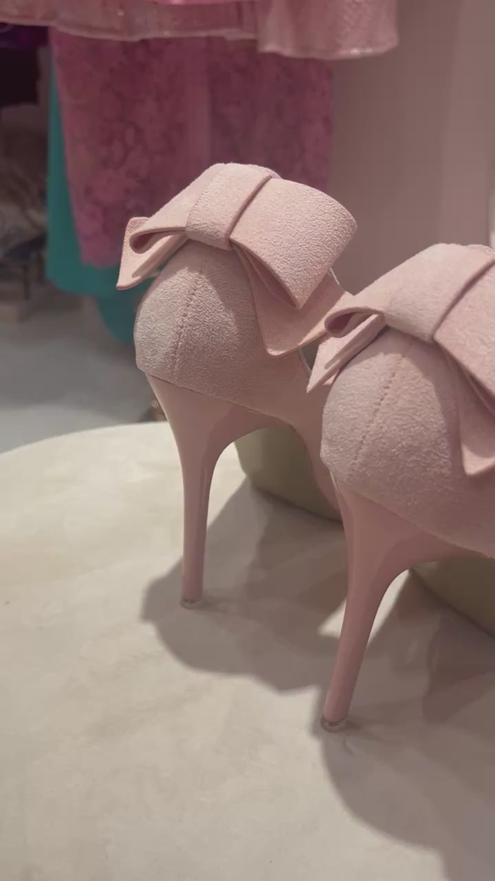 *Light pink suede heels with small bow on the back