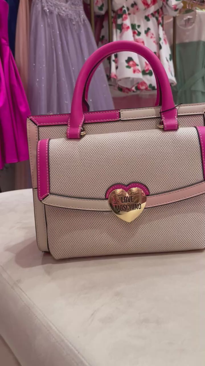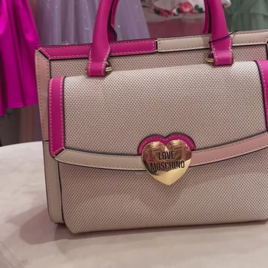 *Bolso tote love moshino beige y rosa color fucsia