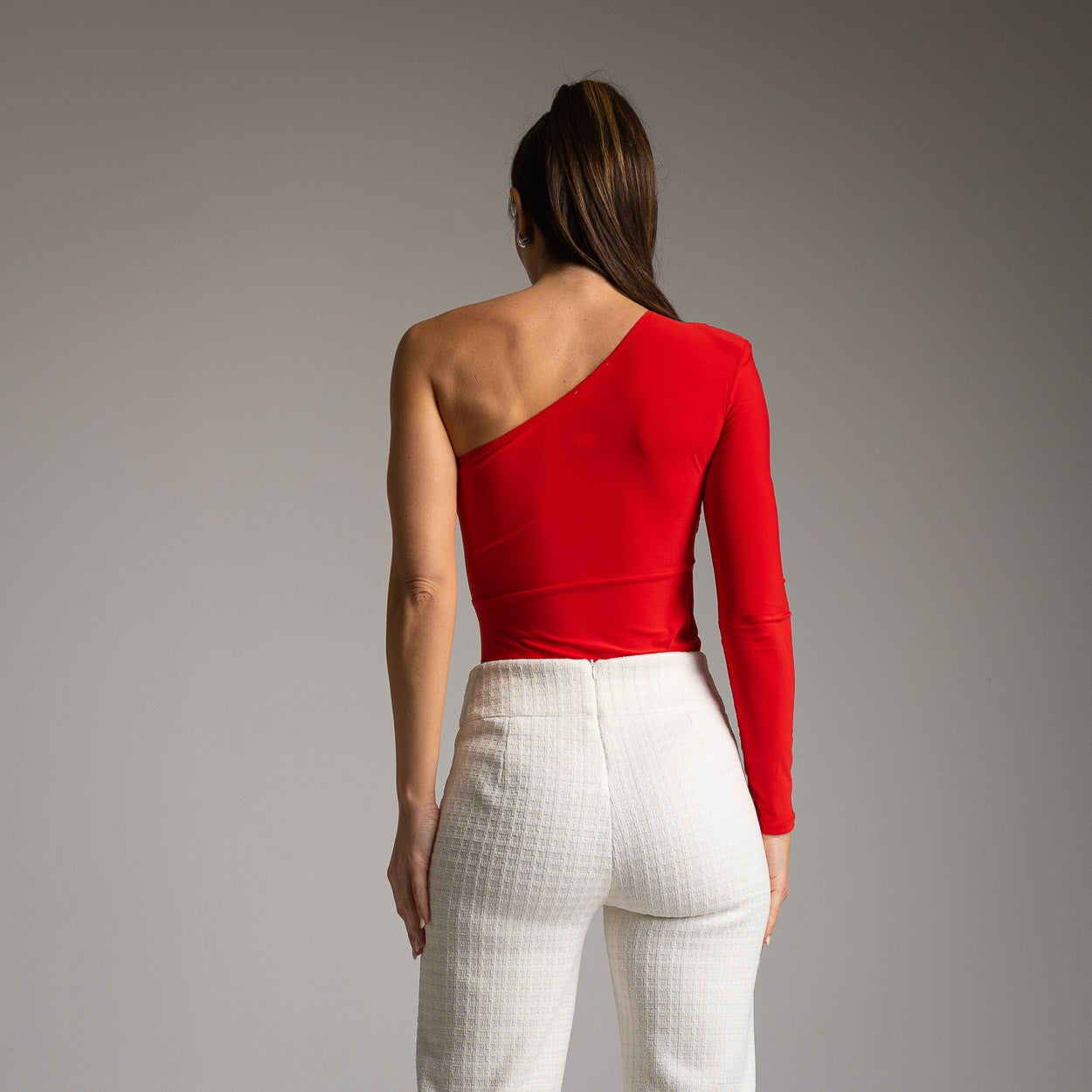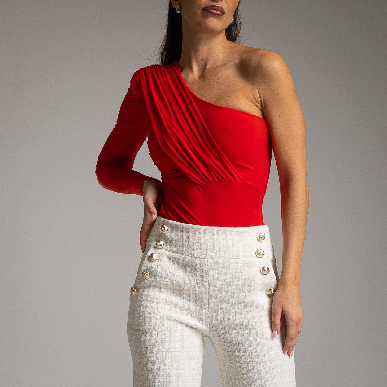 RED ASYMMETRIC BODY TOP