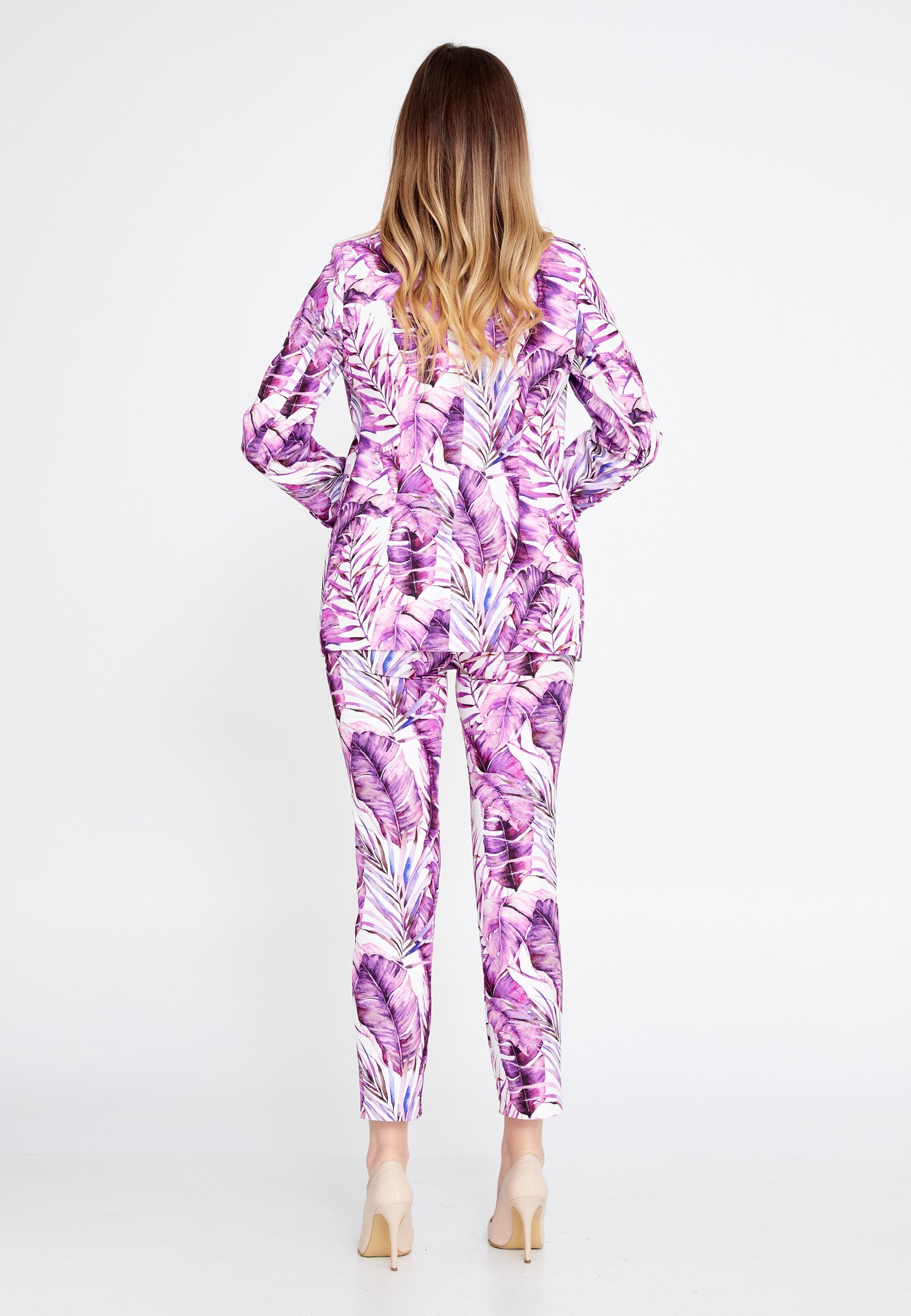 *Tropical fuschia purple palm leaves print blazer and fitted pant