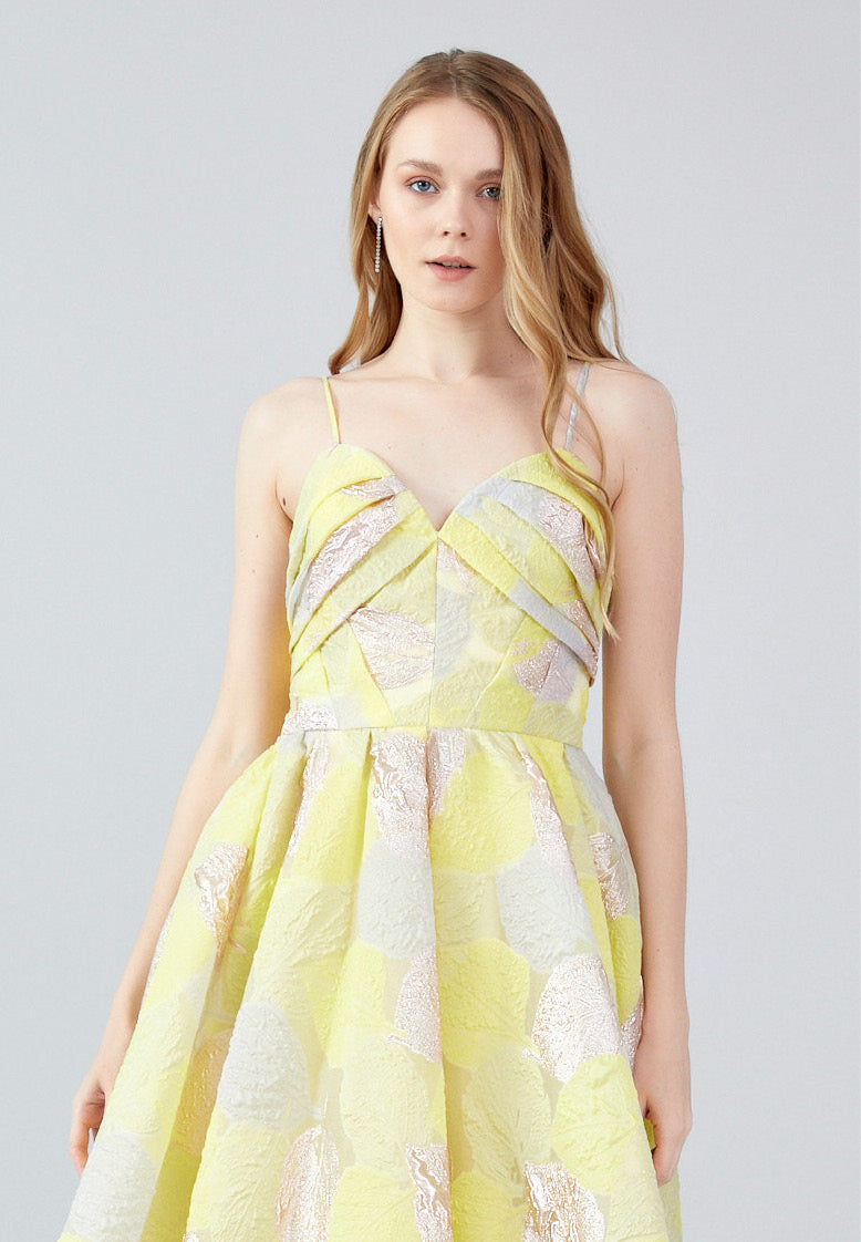 YELLOW ORGANZA FLARED DRESS