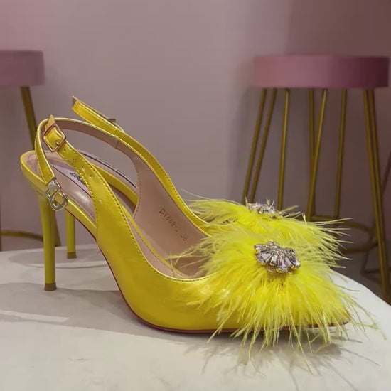 YELLOW OSTRICH CRYSTAL PUMP